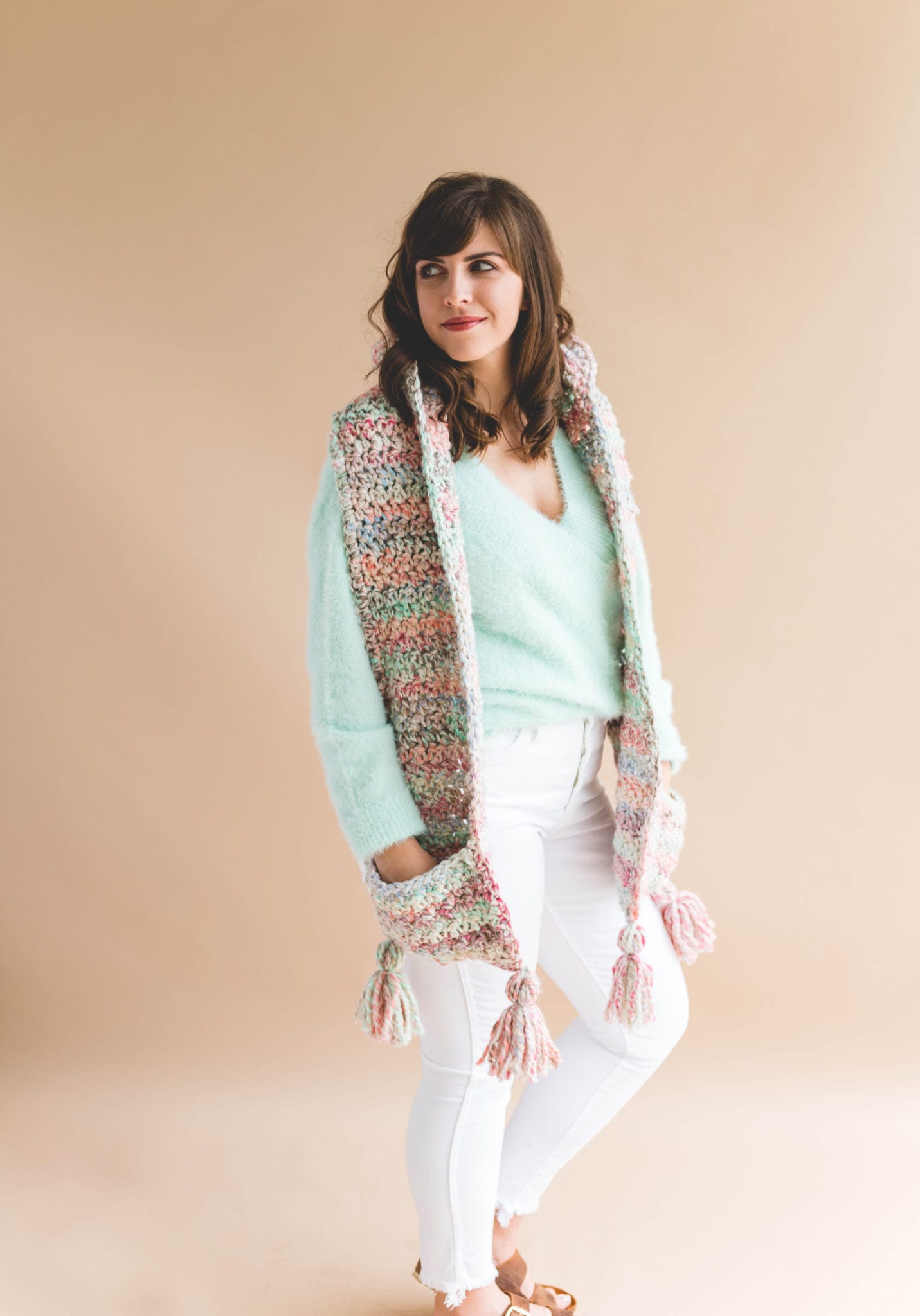 Hooded Crochet Scarf With Pockets Free Crochet Pattern Winding Road Crochet